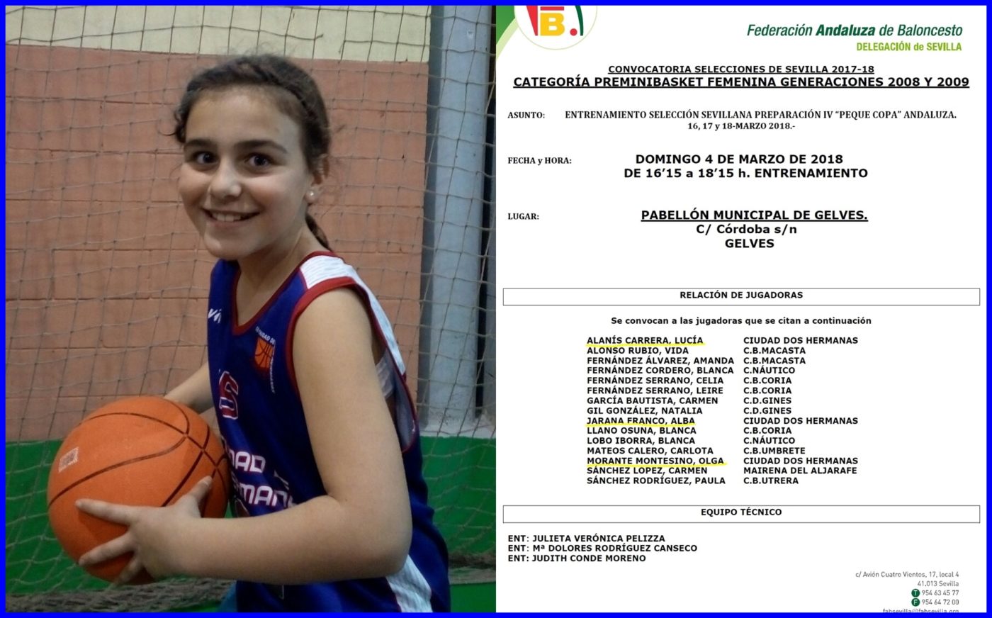 Alba Jarana convocada por la selección sevillana de baloncesto en la categoría de preminibasket.