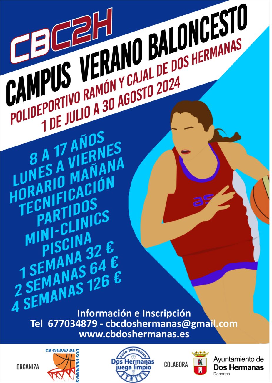 El Club de Baloncesto Ciudad de Dos Hermanas, en colaboración con la Delegación de Deportes del Ayuntamiento, va a celebrar un Campus de Baloncesto  durante el verano de 2024 en las instalaciones del Polideportivo Ramón y Cajal con las siguientes características: