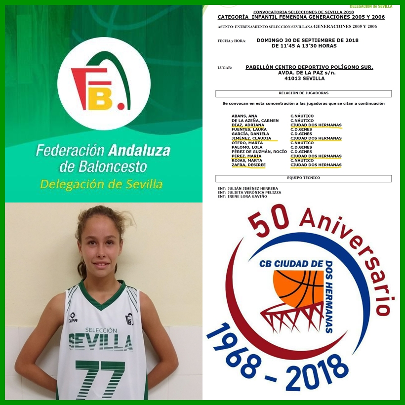 CLAUDIA JIMÉNEZ CONVOCADA POR LA SELECCIÓN SEVILLANA DE BALONCESTO 29 septiembre, 2018News Nuestra jugadora infantil CLAUDIA JIMÉNEZ es una de las 12 jugadoras seleccionadas para formar parte de la selección Sevillana de baloncesto, para participar en el Campeonato de Andalucía de selecciones provinciales