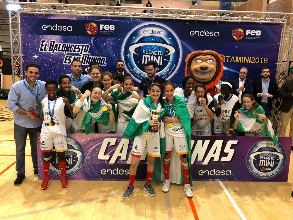 Nuestras jugadoras Claudia Jiménez y Carmen Calabuig se han proclamado” Campeonas de España” con la  selección andaluza minibasket femenina, consiguiendo el oro en una final donde las nuestras fueron superiores en todo momento a la selección catalana (72-53).