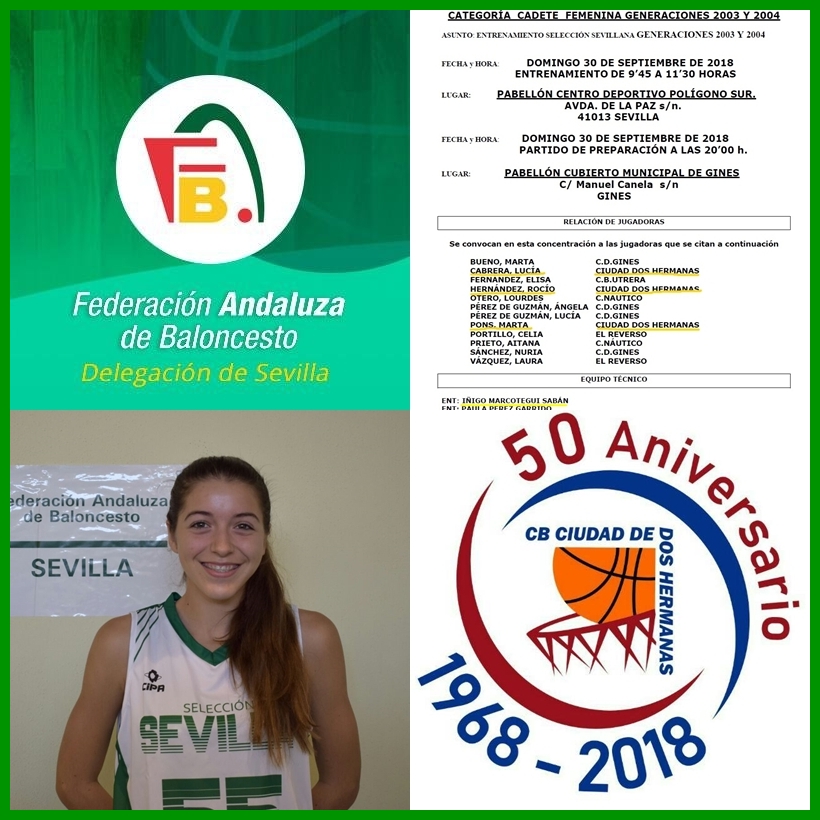 MARTA PONS CONVOCADA POR LA SELECCIÓN SEVILLANA 28 septiembre, 2018News Nuestra jugadora cadete MARTA PONS es una de las 12 jugadoras seleccionadas para formar parte de la selección Sevillana de baloncesto, para participar en el Campeonato de Andalucía de selecciones provinciales