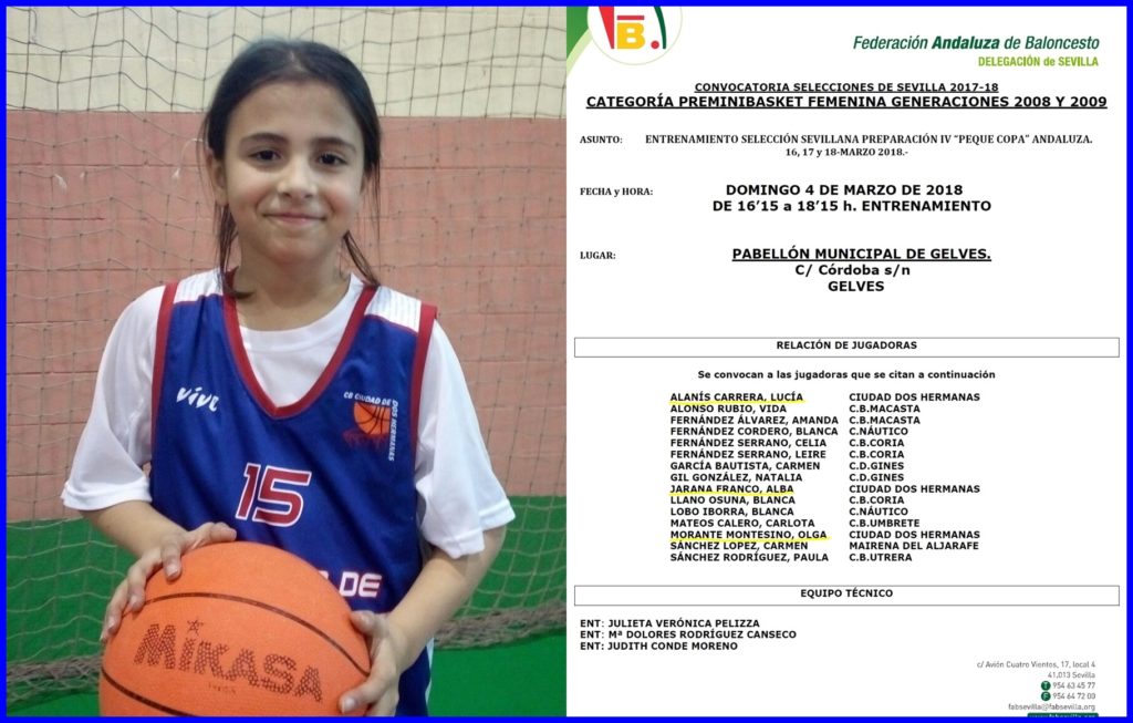 Olga Morante convocada por la selección sevillana de baloncesto en la categoría de preminibasket.