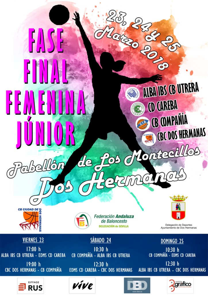 En la mañana de hoy con la presencia del Delegado de Deportes del Excmo. Ayuntamiento de Dos Hermanas D. Francisco Toscano Rodero, el Delegado en Sevilla de la FAB D. Aníbal Méndez Ziebold y el Presidente del Club Baloncesto Ciudad de Dos Hermanas D. Jesús Llano Ricote, se ha presentado la Fase Final Junior Femenino de baloncesto que tendrá lugar los días 23,24 y 25 de marzo en el Pabellón Municipal de “Los Montecillos” (Dos Hermanas).