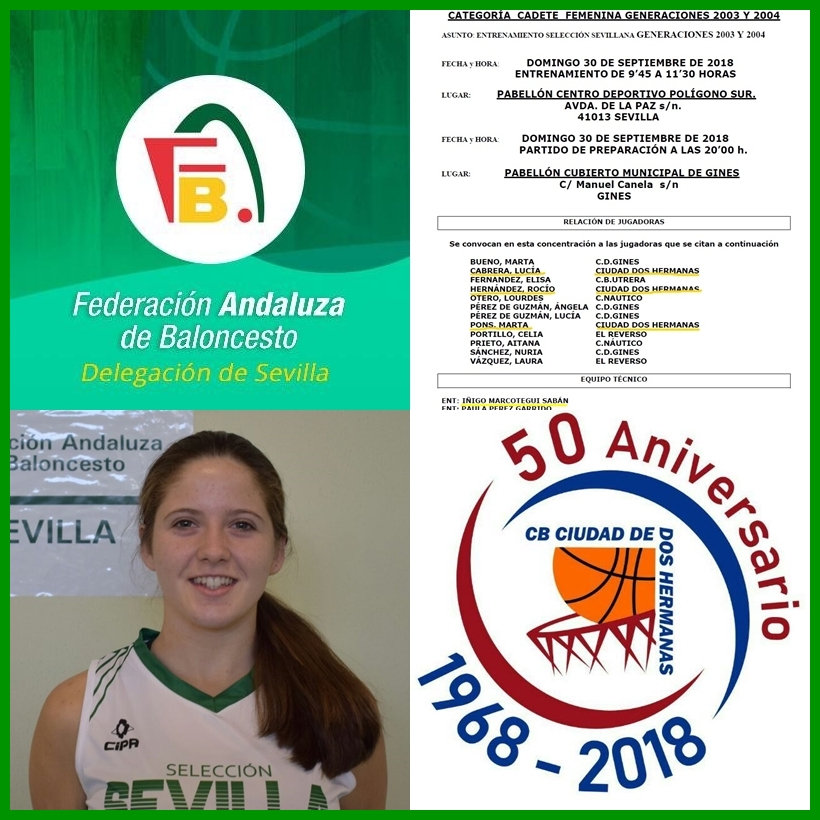 Nuestra jugadora cadete ROCÍO HERNÁNDEZ  es una de las 12 jugadoras seleccionadas para formar parte de la selección Sevillana de baloncesto, para participar en el Campeonato de Andalucía de selecciones provinciales.
