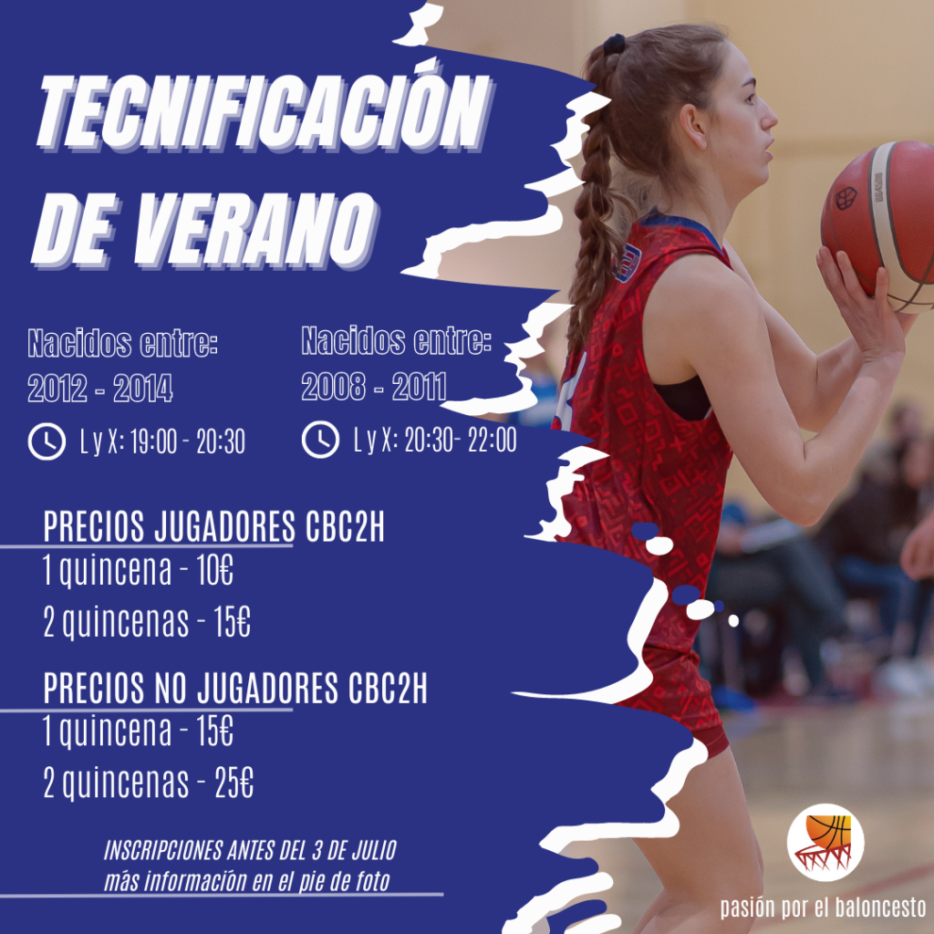 - Realiza una transferencia con el importe correspondiente a BANCO SABADELL con IBAN ES19 0081 0359 3900 0179 5389, poniendo en el concepto “CUOTA INSCRIPCION TECNIFICACION CBCDH- NOMBRE Y APELLIDOS DEL JUGADOR/A”